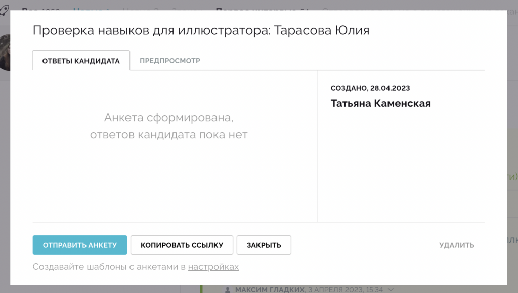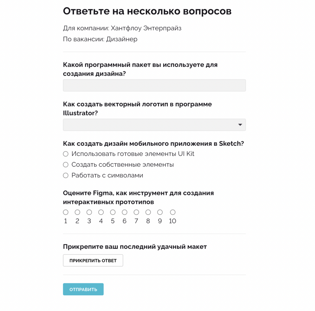 Подробнее про анкеты кандидатов читайте в руководстве Хантфлоу.