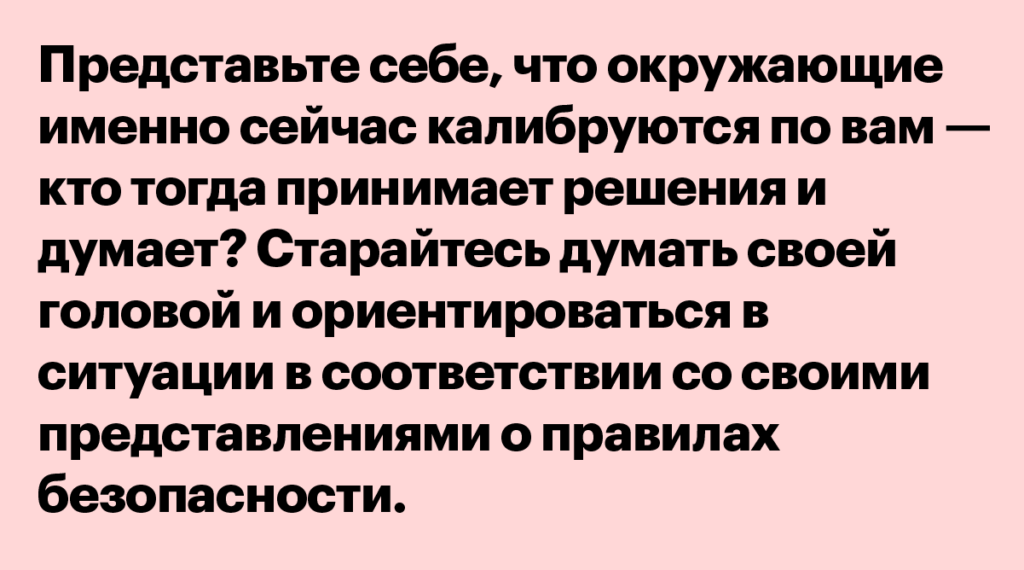 Помните, в тревожных, потенциально опасных ситуациях у людей отключается логика. То есть действовать люди будут в соответствии с древними стадными протоколами, не анализируя свое поведение. И сейчас, условно, для коллектива вы как руководитель — «вожак стаи». Глядя на вас, формируют свое поведение все ваши сотрудники.