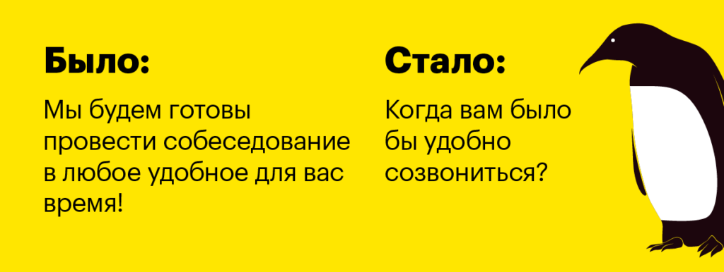 Конечно, под кандидата нужно подстраиваться. Но общение должно быть на равных. Сравните: