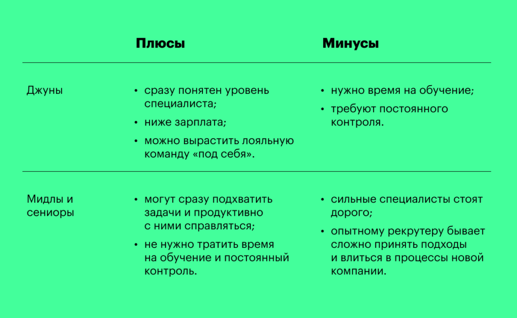 5. Подбор узких специалистов лучше доверять мидлам или сениорам.