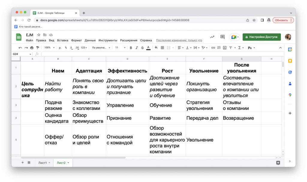 Создавать EJM в спешке. Прежде чем браться за задачу, эйчару нужно оценить ресурсы. Создание карты — большой проект. Если нет времени или этим некому заниматься, то не стоит и начинать.