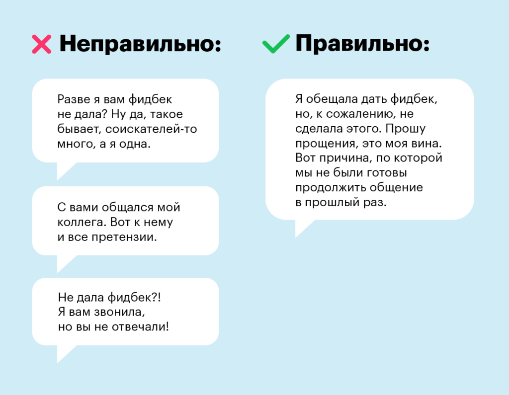 Не нужно притворяться, что ничего не произошло. Если знаете причину негатива, попытайтесь исправить ситуацию. Желательно сделать это превентивно — еще до выхода на связь с кандидатом.