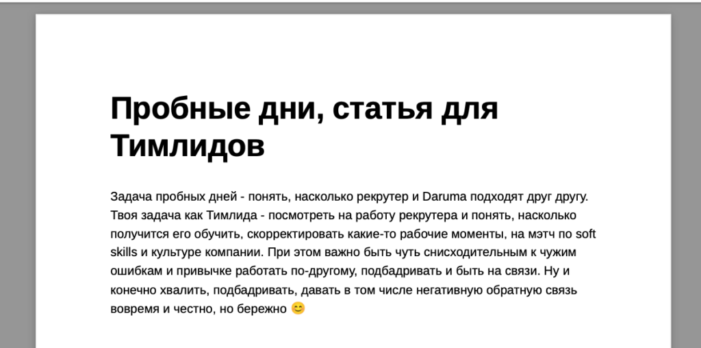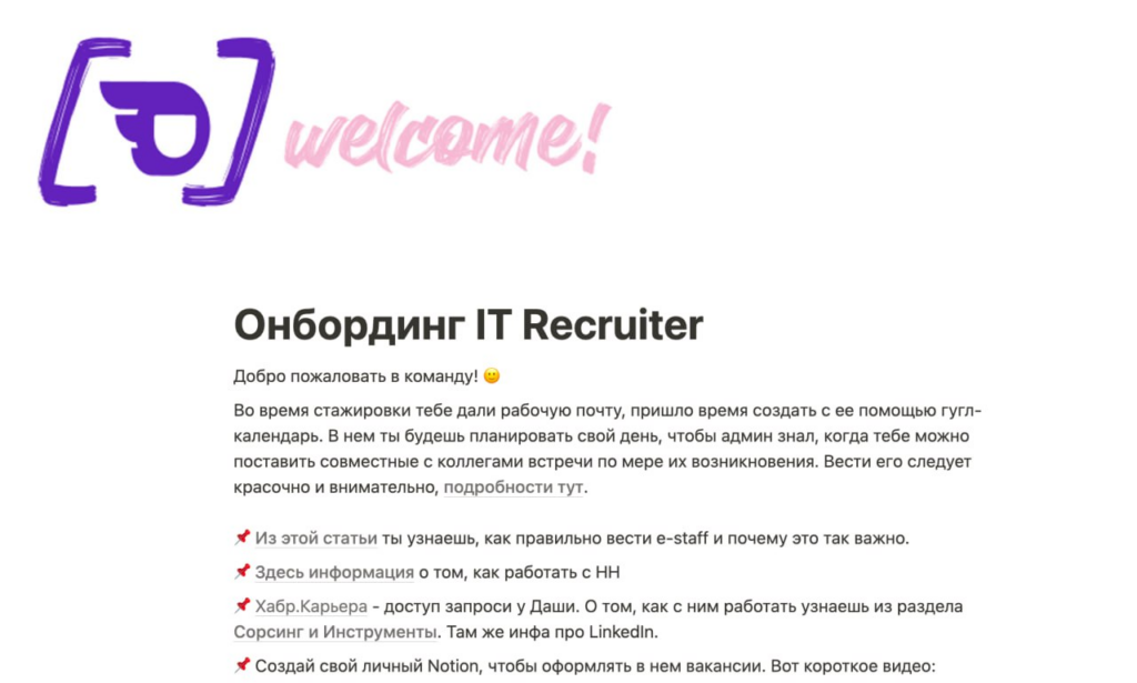 Чтобы унифицировать процесс для всех участников, мы разработали подробную инструкцию для тимлидов и организаторов стажировок. Все этапы мы подробно описали в статье в Notion.