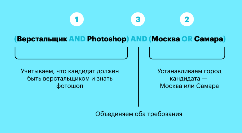 Предположим, рекрутеру нужен верстальщик со знанием фотошопа из Москвы или Самары. Составим запрос: