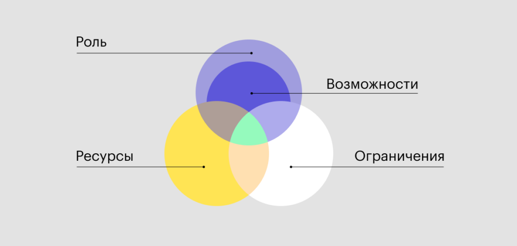 Правильный подход — разобраться в задаче и оценить свои силы. Для этого можно составить матрицу роли, возможностей, ограничений и ресурсов. Вот как она выглядит: