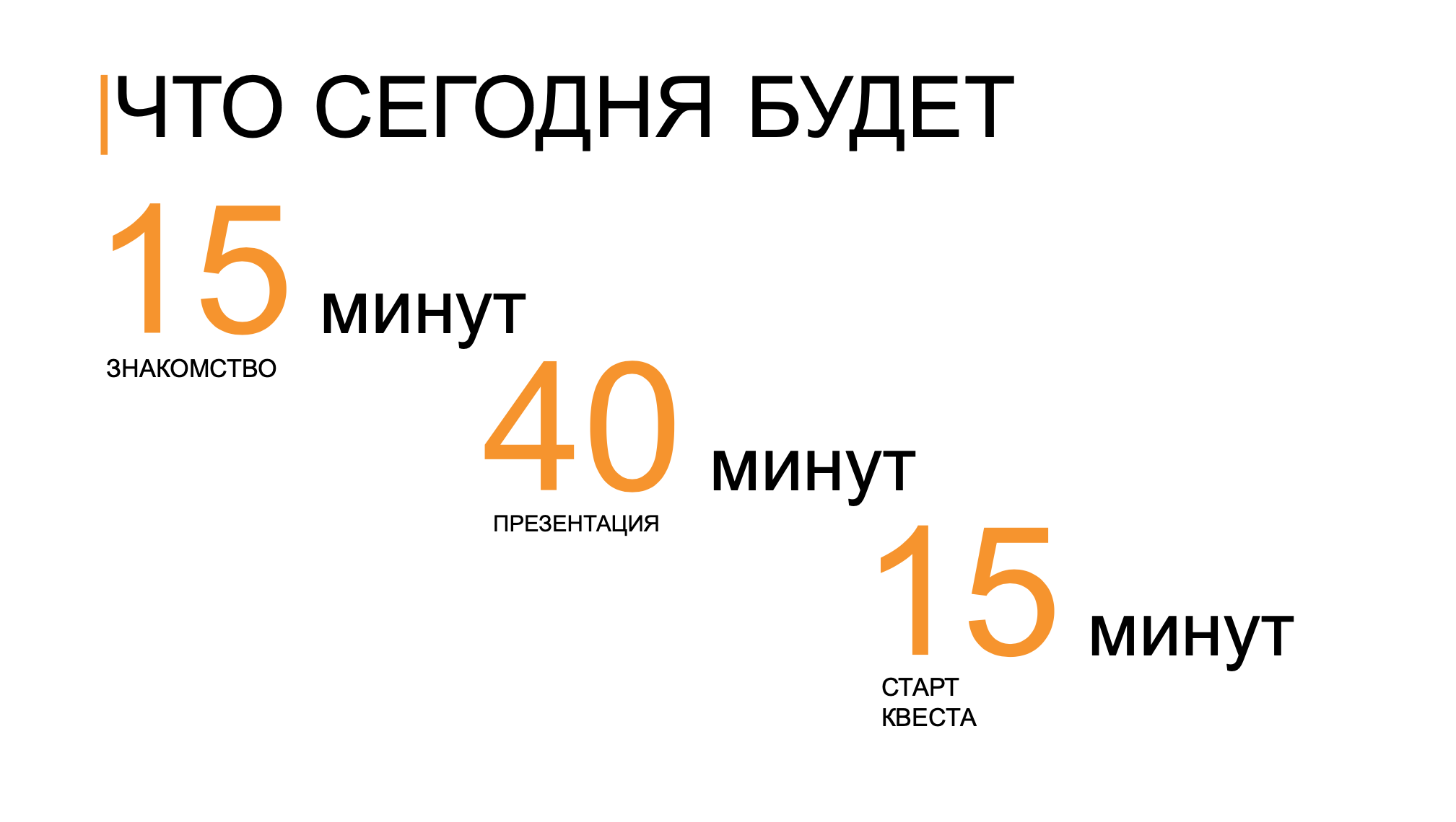 Как правило, интервью продолжается около полутора часов: первый час уходит на презентационную часть, а последние 20–30 минут — на запись кандидатов на следующий этап. А если группа сравнительно небольшая, можно уложиться и в 40 минут.