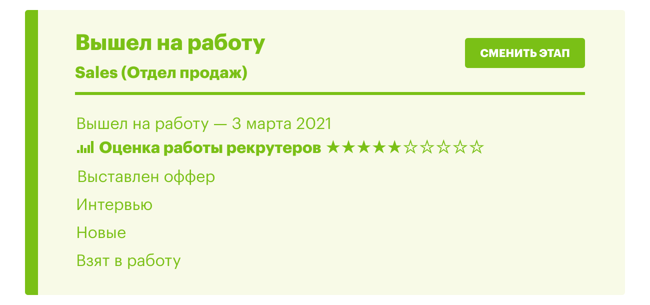 Результаты оценки заказчика сохраняются в истории работы по кандидату.