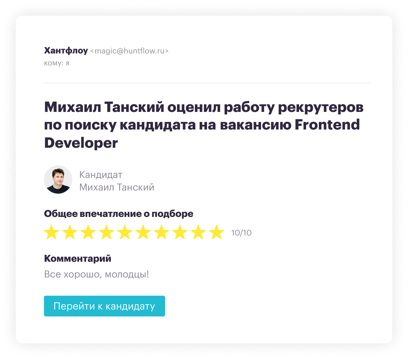 Функция оценки удовлетворенности заказчиков доступна всем клиентам Хантфлоу на тарифе «Максимальный».