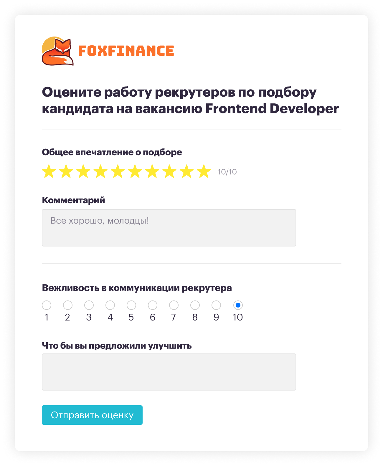 Лучше предупреждать такие ситуации, чем исправлять последствия. Для этого нужно оперативно собирать и обрабатывать фидбек от нанимающих менеджеров. Сбор обратной связи должен быть автоматизирован и унифицирован. Это упростит задачу для заказчика и позволит рекрутеру получать только самую важную информацию.