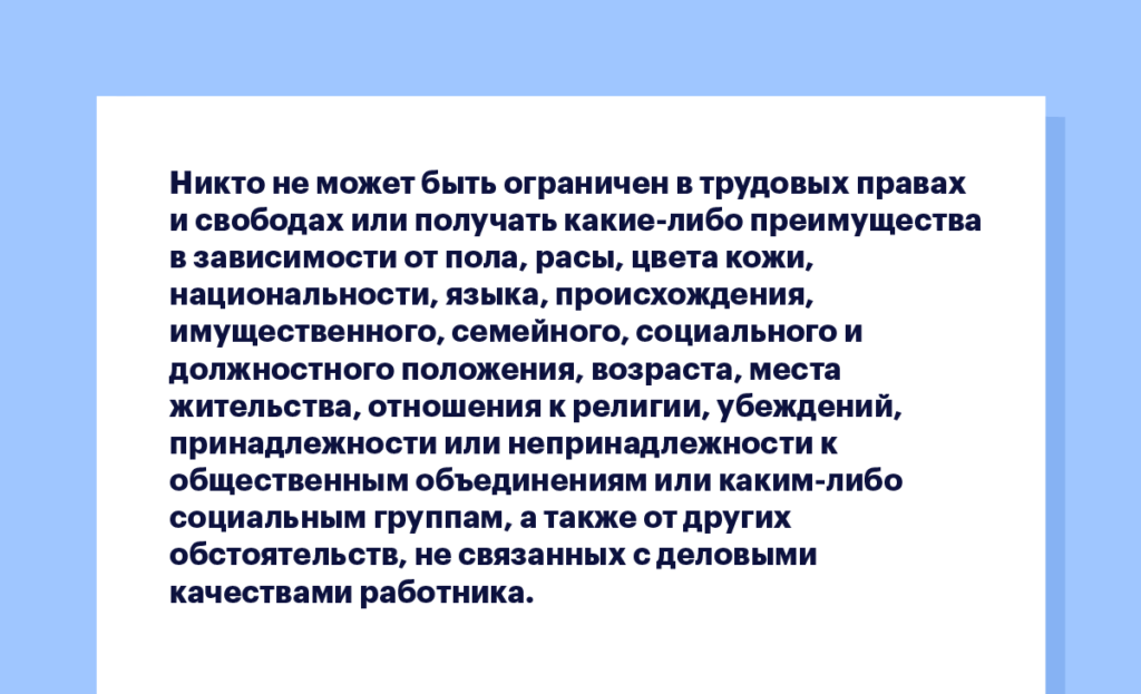 В вакансии нельзя указывать требования, которые дискриминируют работника. Это регулируется статьей 3 Трудового кодекса: