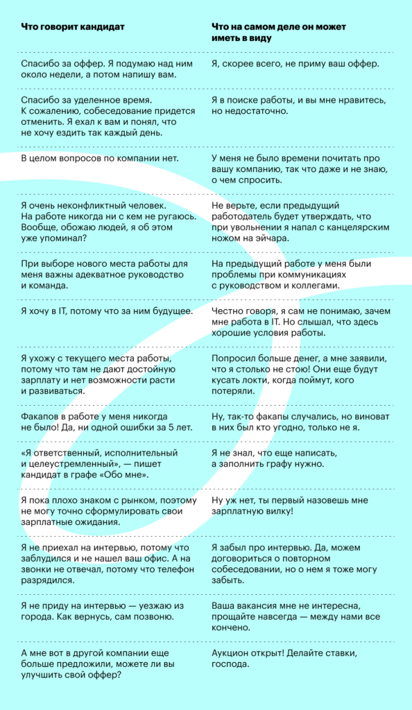 Иногда рекрутеру приходится трактовать не слова, а поведение кандидата.
