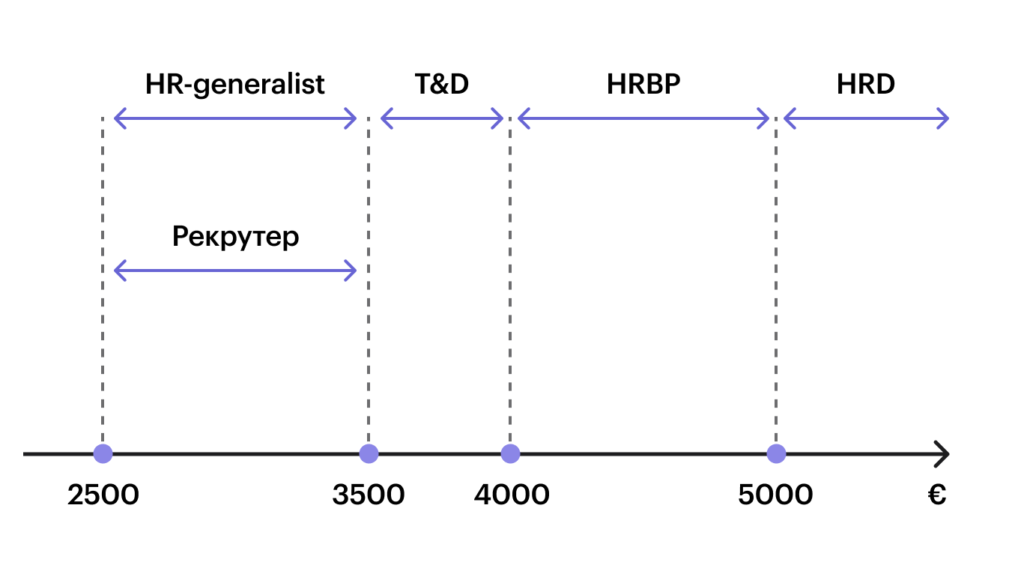 Нижняя зарплатная граница обусловлена визовыми требованиями — 2500 €. Меньше могут получать только местные сотрудники — например, менеджер по КДП или C&B-менеджер.