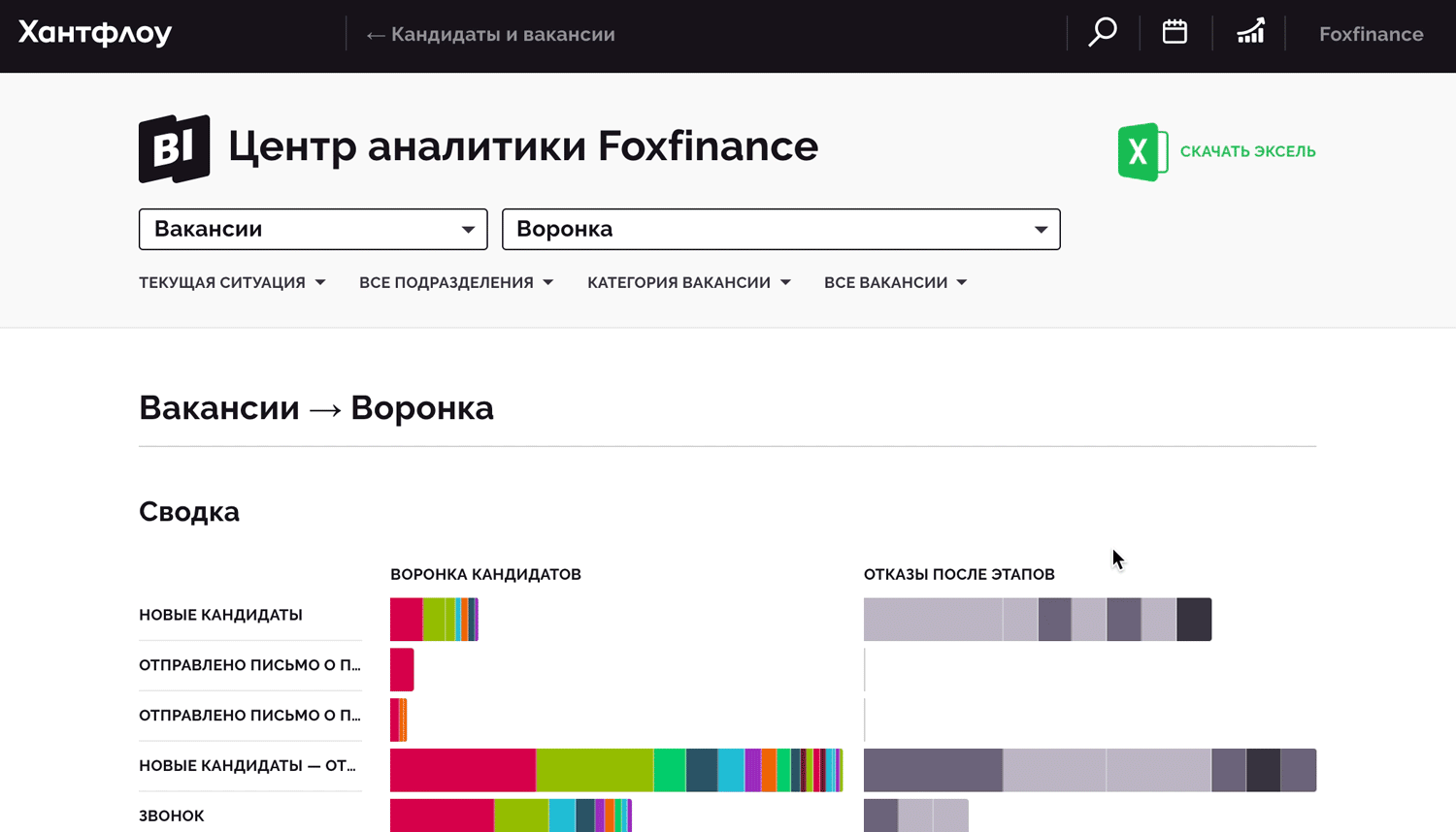 Хантфлоу — профессиональная программа для рекрутинга, которая помогает освободить время рекрутера, систематизировать процесс подбора и автоматизирует формирование отчетности