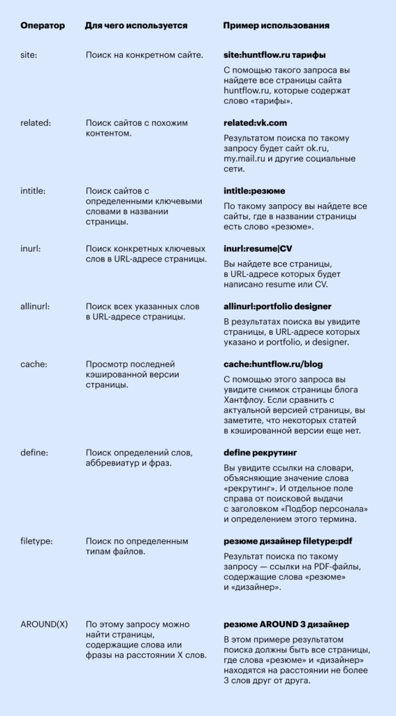Мы разберем, как работают базовые операторы и модификаторы на примере Гугла, Линкедина и Хедхантера.