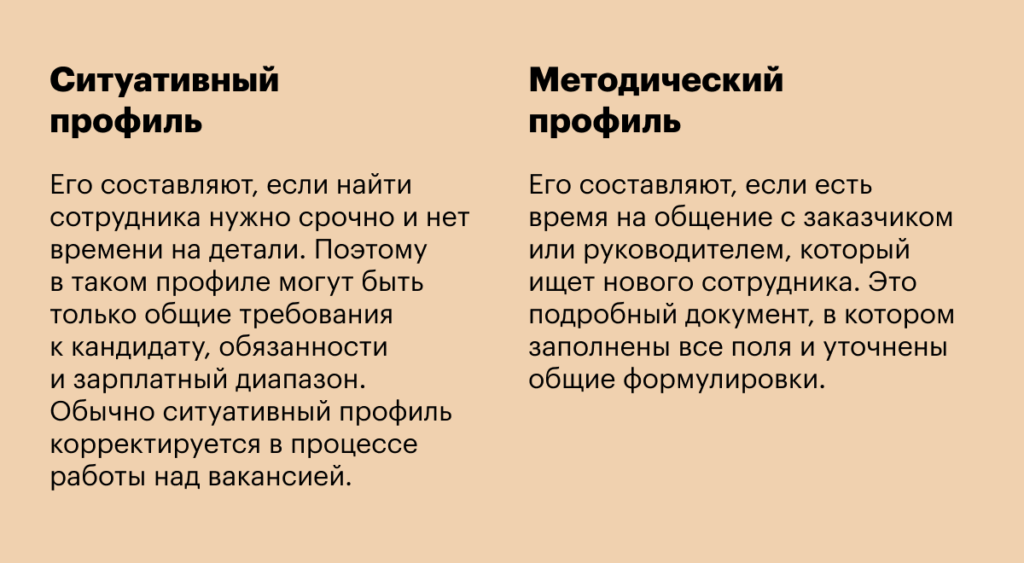 Не согласовать профиль с заказчиком. Если заказчик финально не утвердил документ, в будущем он может отказаться от своих слов. Поэтому важно продумать процесс согласования и объяснить заказчикам, что профиль — это не отписка, а техническое задание на поиск сотрудника.