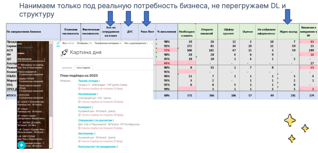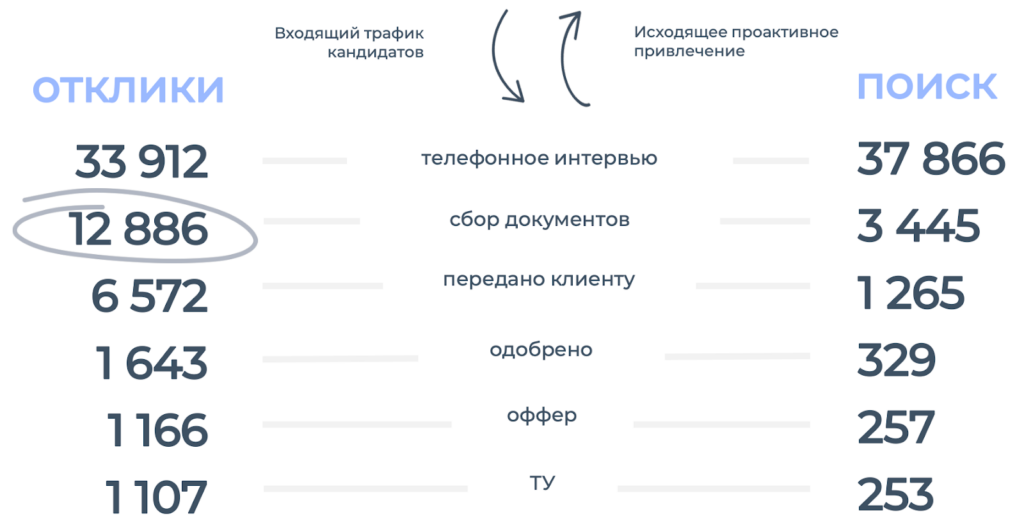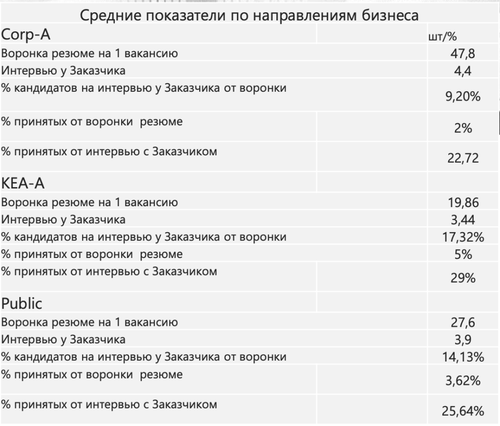 Тогда мы организовали встречу с участием руководителей разных уровней. Показали им воронку, общее количество кандидатов, отказов и проведенных HR-интервью. По итогам встречи вместе с бизнесом мы приняли решения: