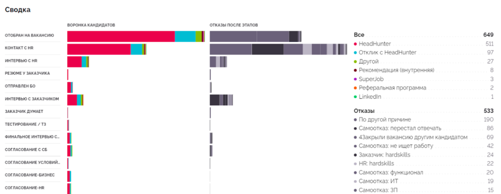 На встречах с заказчиками мы формируем воронки в режиме онлайн. Заказчики видят весь объем работы, который выполняет эйчар, и понимают ценность подбора.
