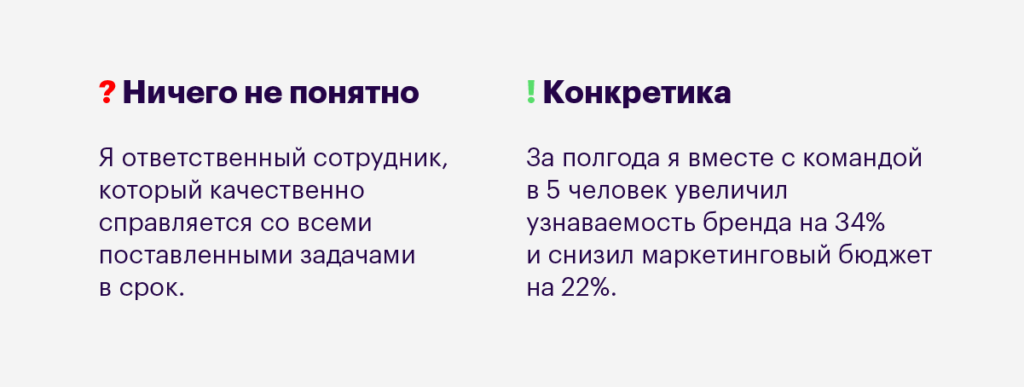 Мы всегда смотрим, насколько понятно и четко кандидат излагает мысли: важно, чтобы из резюме было понятно, как и чем он занимался. Если же в описании задач и достижений одна вода — это негативный фактор.