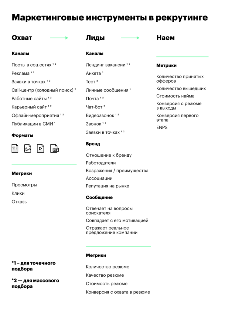 Вот лишь несколько примеров инструментов маркетинга, которые используются в HR-сфере: