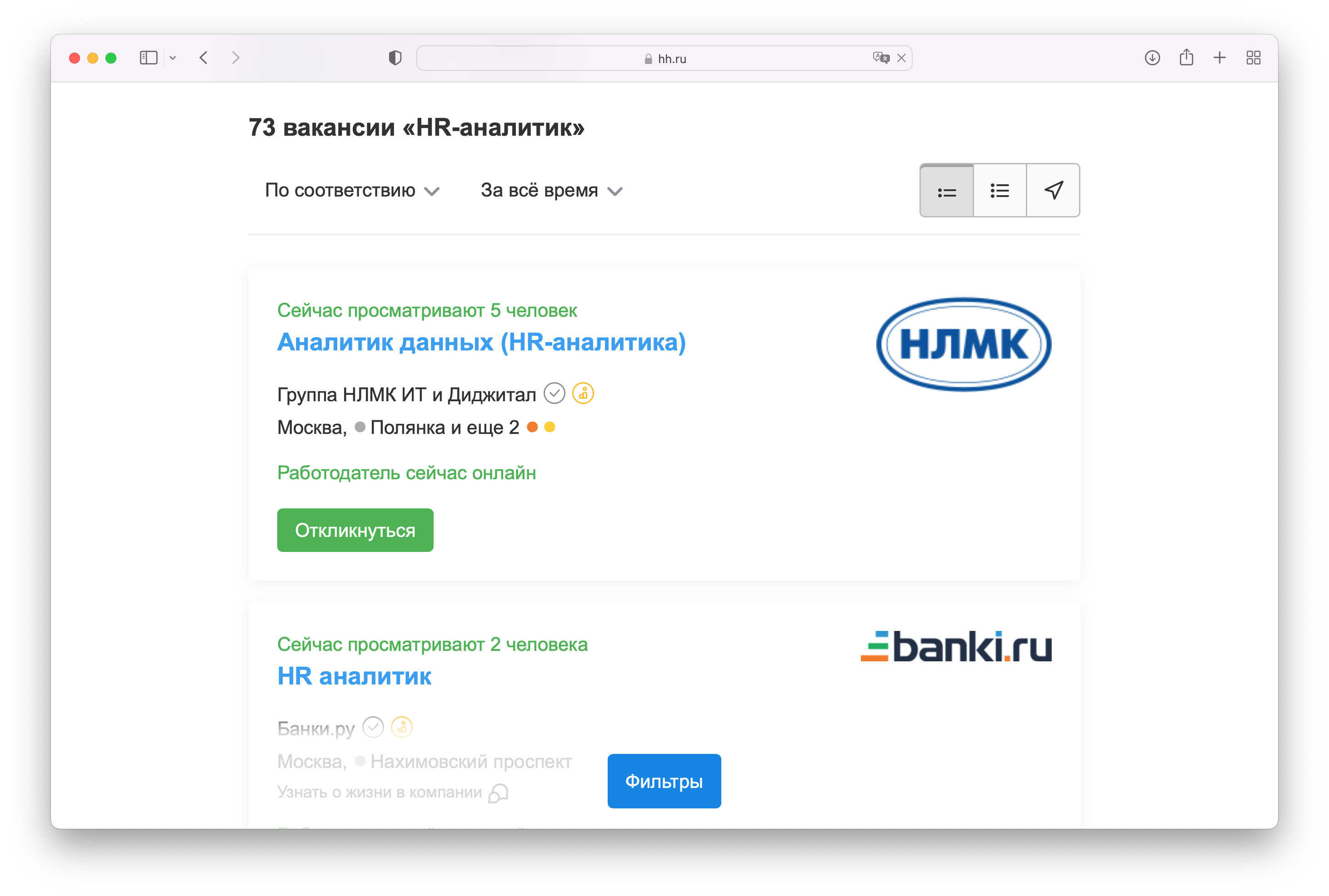 Вакансии HR-аналитиков публикуют на Хедхантере и в LinkedIn. Но подход к поиску диктует узкий рынок: поскольку специалистов немного, лучше не ждать откликов, а использовать холодный поиск — звонить или писать каждому потенциальному кандидату.