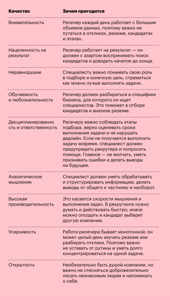 Главная задача ресечера — усилить наем за счет наращивания скорости подбора.